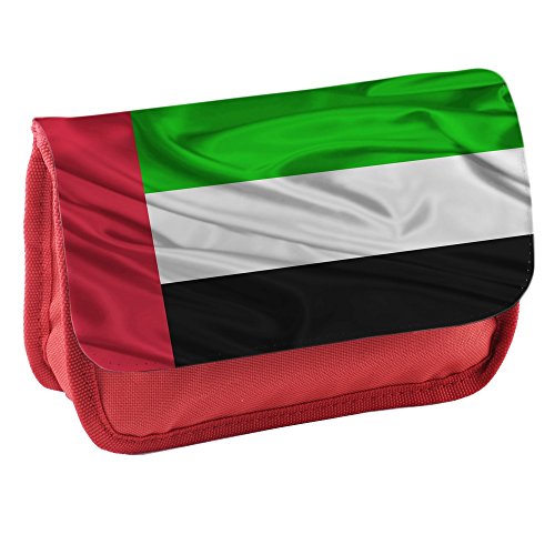 Bandiere Emirati Arabi Uniti, Sventolando, Rosso Scuola Bambini Sublimazione di alta qualità Polyester Astuccio Matita Caso con Design Colorato. 21x13 cm.