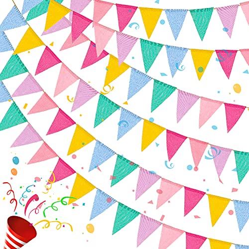 [Bandierine Colorate]: ti forniamo 4 set di catene triangolari colorate, ogni bandiera colorata si estende per circa 4 metri di lunghezza, ogni banner colorato ha 12 gagliardetti, ogni gagliardetto misura circa 13 cm x 18,5 cm, può facilmente soddisfare le tue esigenze di decorazione .