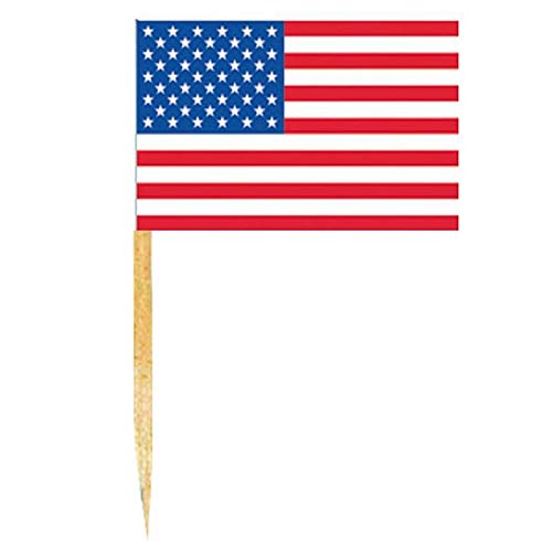 50 bastoncini da cocktail alti 6,5 cm con bandiere USA che misurano 2,5 cm di altezza e 3,5 cm di larghezza. Ideale per una serata a tema o una decorazione da tavola all'americana.