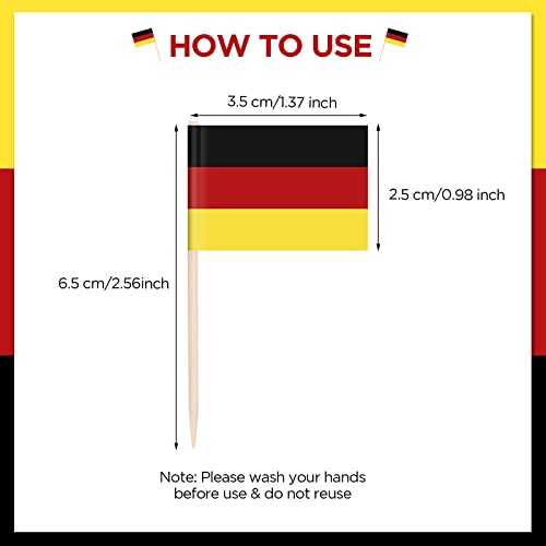 Contenuto della confezione: questa confezione contiene 100 bandierine per cocktail della Germania. La decorazione perfetta per panini, cupcake, frutta, cocktail e tutti gli snack. Aggiungi un'atmosfera patriottica ai tuoi festival e feste.