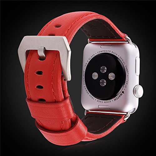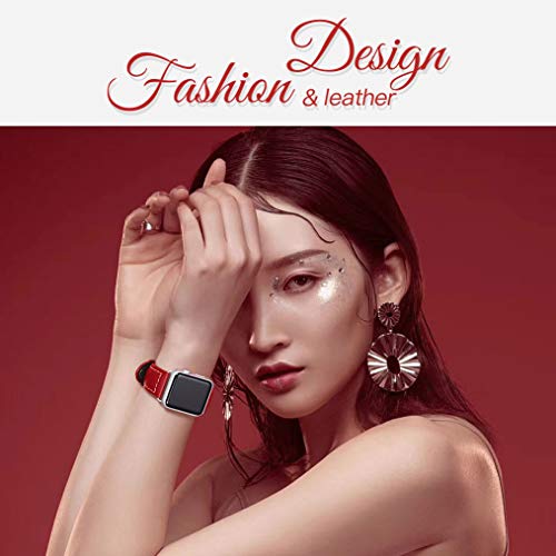 Bandmax Cinturino di Scambio in Pelle Vera per Apple Watch Tutti i Modelli, Pelle Liscia Rossa 38 mm Fibbia Acciaio Inossidabile Colore Argento Cinturino Sportivo (Rosso)
