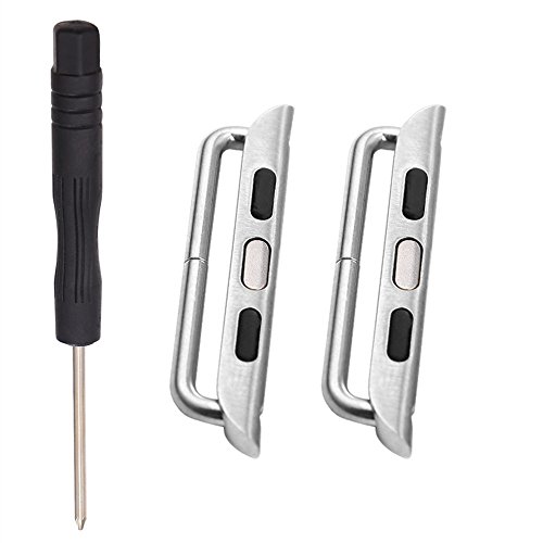 Bandmax Connectors for Apple Watch, Watch Strap Lugs Stainless Steel Replaceable Connection Adapter with Pentalobe Screwdriver for iWatch Series 2/1 42MM (Silver)
