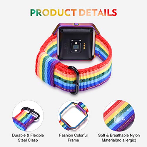 Bandmax Fitbit Blaze Strap And Frame, Rainbow Design Comfortable Nylon Weave Replacement Fabric Wrist Strap for Fitbit Blaze Smart Watch (Multicolor Frame)