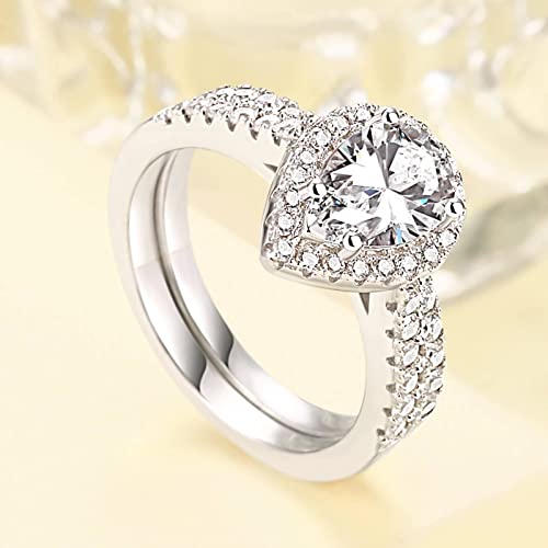 Banemi Anelli Donna Anello Pietra Regalo Coppia Anello Donna Argento 925 Set di Anelli con Pietra Tagliata A Pera Misura Anello 15