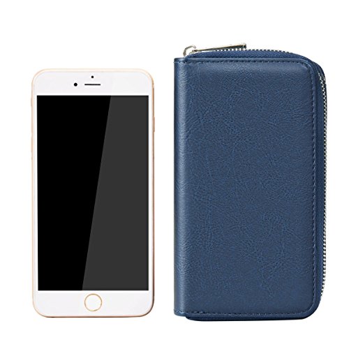 BANGBO Premium PU Leather Double Zipper Wallet Handbag Purse Card Case Money Organizer Phone Holder for Cell Phone IPhone 7/7 Plus/SE/6S/6 Plus/5S and Samsung Galaxy S8/8 Plus/S7/S6, Blue