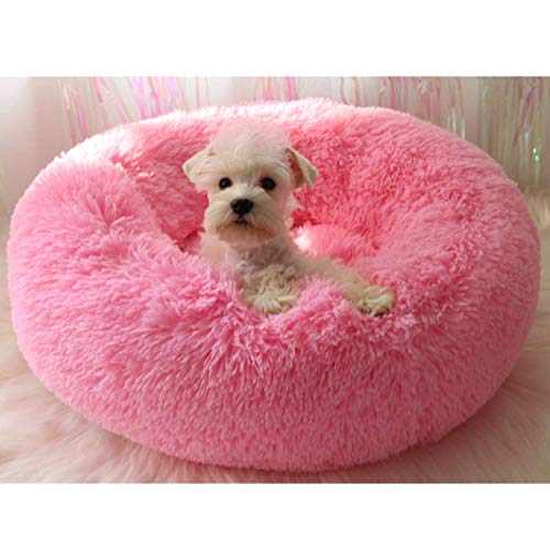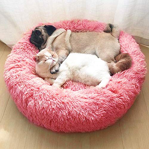 Bangminda Letto Molle dell'animale Domestico per Gatti Cani di Piccola e Media, 50CM Cuccia a Forma di Ciambella, Nido della Base Rotonda Caldo Morbido Peluche Confortevole per Invern (Rosa)