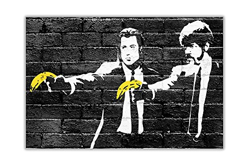 iconico Banksy Graffiti di Pulp Fiction Samuel l Jackson e John Travolta holding banane, stampata su tela, e avvolto intorno ad un telaio di legno, una perfetta per qualsiasi salotto o camera da letto.