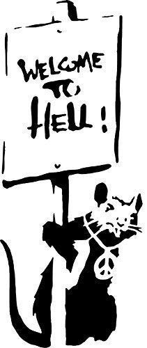 Banksy Rat Graffiti Stampo - Benvenuti To Hell Topo/Riutilizzabili Arredo Casa & Arte Artigianato Pittura Stampo - SEMI TRASPARENTE STAMPO, M/ 15X37CM