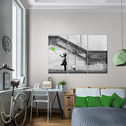 Runa Art Banksy Palloncino Ragazza Quadri Soggiorno Grande Verde Arte Di Strada 120 x 80 cm 3 Pezzi Decorazione Murale 301631b