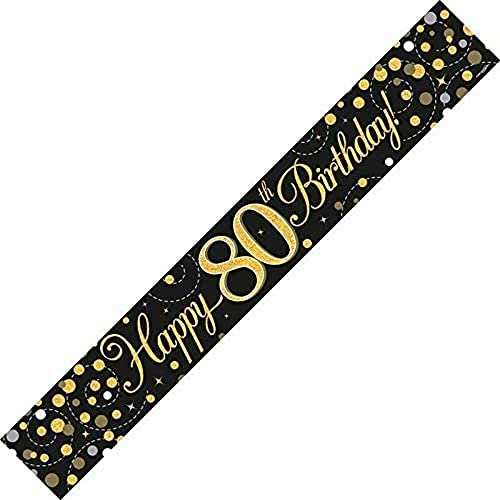Banner scintillante per 80° compleanno nero e oro olografico da 2,7 m