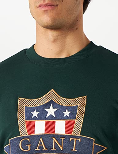 GANT D1 Banner Shield C-Neck Pullover, Tartan Verde, XXL Regular Uomo