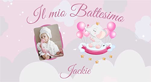 BANNER STRISCIONE BATTESIMO PERSONALIZZATO CON FOTO E NOME - elefantina - NEONATO BIMBA ANCHE DA ESTERNO - BANNER PVC DA ESTERNO GARANZIA 5 ANNI (200X150 CM)