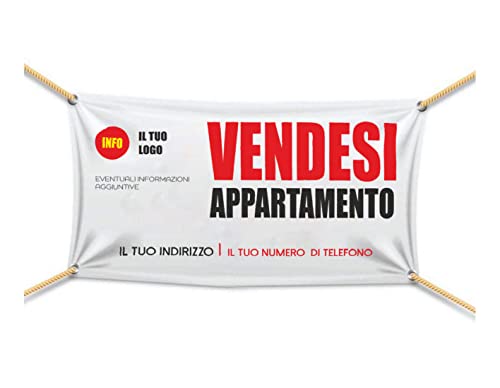 Banner Striscione - VENDESI APPARTAMENTO CON IL TUO LOGO, SCRITTA E NUMERO PERSONALIZZABILE - Banner PVC Da Esterno GARANZIA 10 ANNI (500X100 CM)