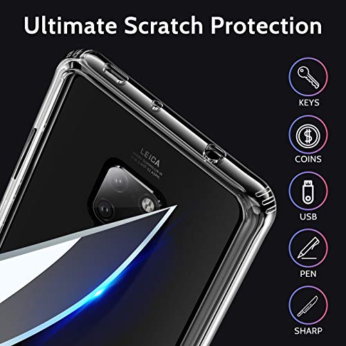 BANNIO Cover per Huawei Mate 20,Custodia in Vetro Temperato 9H e Cornice Paraurti in Silicone Morbido per Huawei Mate 20,Antiurti,Antiscivolo,AntiGraffio Protettiva Cover Case,Trasparente