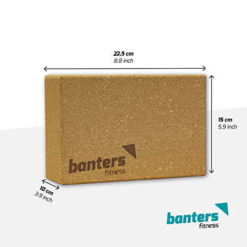 Banters Yoga Block, Blocco da Yoga 2 Pezzi Supra-Grip in Sughero Naturale al 100%, Taglia Large