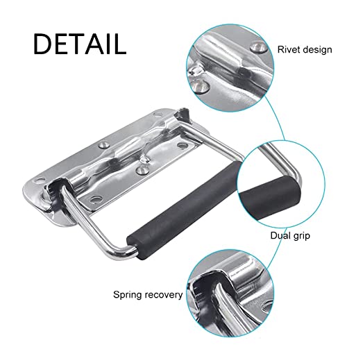Materiale premium: Questa maniglia a molla è realizzata in ferro di alta qualità, resistente alla ruggine e alla corrosione, ha una forte capacità di carico ed è robusto e durevole. L'impugnatura del manico pieghevole è realizzata in gomma di alta qualità per proteggere le mani dalle lesioni.
