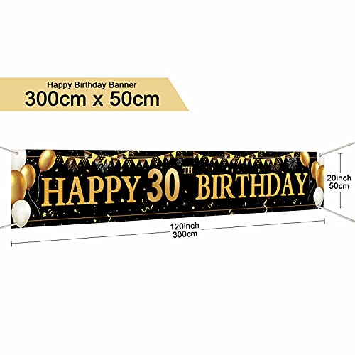 Grande Dimensione: Decorazioni compleanno 30 anni pacchetto contiene un pezzo di grande striscione di buon compleanno nero e oro, misura 9,8 x 1,8 piedi / 3mx50cm, abbastanza grande per decorazioni perfette per feste di compleanno e per sfondi fotografici alla tua festa.