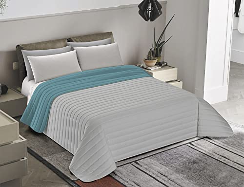 Banzaii Trapuntino Mezza Stagione Matrimoniale 250x260 cm per Autunno, Primavera, Acquamarina/Grigio Made in Italy