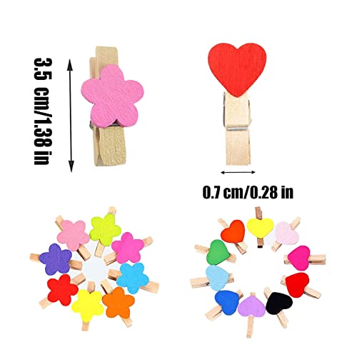 【Set di Clip in legno】La confezione contiene 100 mollette, contiene 50 clip colorate d'amore e 50 clip floreali colorate, decorazione perfetta e divertente. La lunghezza è di 3,5 cm (circa 1,38 pollici).