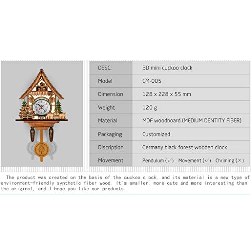 Dotato di movimento moderno dell'orologio al quarzo, questo orologio da parete in legno ispirato al cucù può sicuramente aiutare a raccontare il tempo e fare in modo che tutto sia programmato il suono del cuculo.