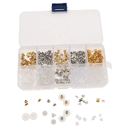 Baoblaze 1 Scatola Ferma Orecchini Ottone Orecchini Fermo Colore Argento Gomma Metallo Frizione Silicone Tappi per Plastica Orecchie - Oro e Argento 550pcs