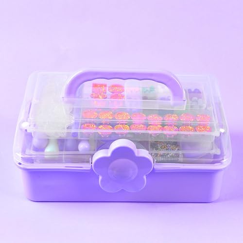 Baoblaze Scatola Portaoggetti Pieghevole Custodia Porta Attrezzi Contenitore con Manico Forniture per Cucito Organizzatore 3 Strati per Articoli di Trucco, Viola