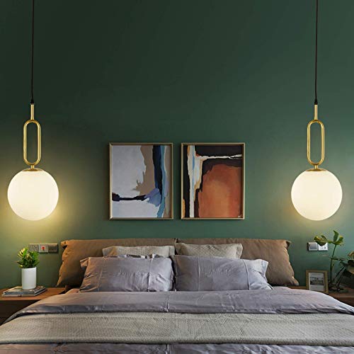 BAODEN - Set di 2 lampadari a sospensione a forma di globo moderno, in ottone spazzolato, finitura con paralume in vetro bianco, per soggiorno, camera da letto, sala da pranzo (oro)