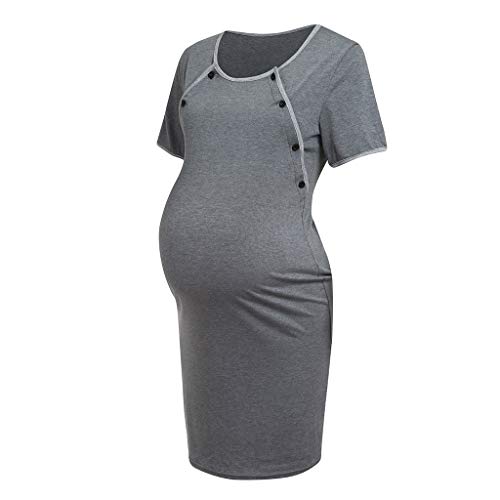 Baohooya Camicia da Notte Allattamento Estivo Manica Corta Vestiti Premaman Pigiama Donna Abito Premaman maternità Infermieristica Casual Vestito di Gravidanza Taglie Forti Grigio M