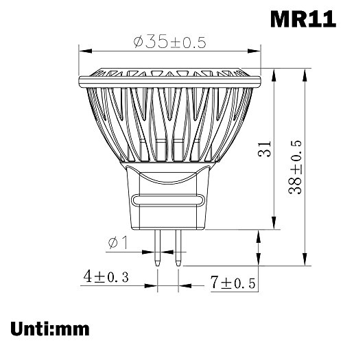 √* L'MR11 standard (non MR16) si adatta con la base GU4.0. Diametro di 35 mm, altezza 38 mm. Può essere facilmente montata al posto delle normali lampadine alogene MR11. Questo tipo è sempre combinato con la lampadina LED MR16 che ha un diametro di 50 cm. Meglio controllare le dimensioni prima di acquistare questo prodotto di ricambio.