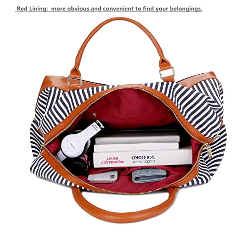 BAOSHA HB-14 Borsa da Viaggio per Donna in Tela Borsone Borsoni da Viaggio Tote da Viaggio per Fine Settimana e Durante la Notte Bagaglio a Mano Weekend Bag (Strisce Blu)