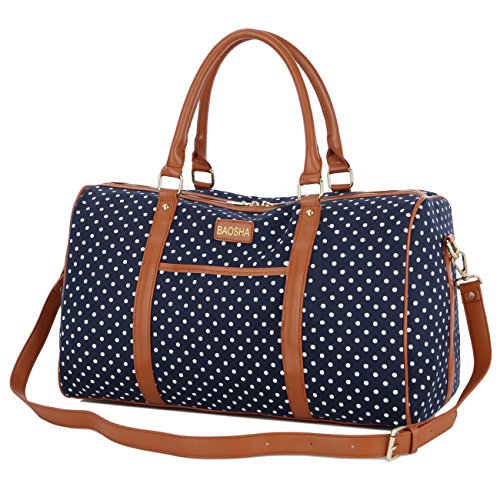 BAOSHA HB-25 - Borsone da viaggio in tela, da donna, per il weekend, per la notte, Pois blu. (Blu) - .