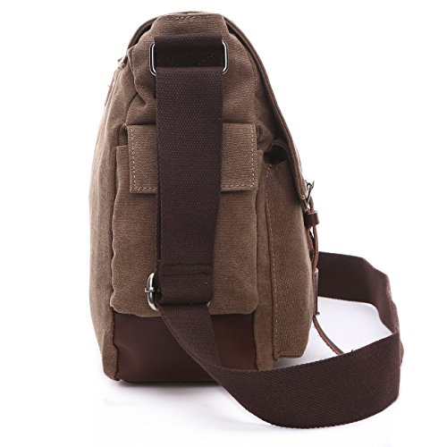 BAOSHA MS-06 Vintage Borsa Messenger da Uomo in Tela e Pelle porta laptop 15" borsa a Spalla per Scuola Viaggo (Nero)