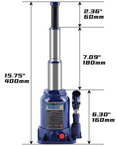 BAOSHISHAN Jack di sollevamento portatile idraulico del Jack della bottiglia dell'ariete del doppio da 6 tonnellate 16cm - gamma dell'ascensore di 40cm