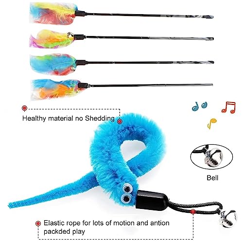 BAOSROY Gioco Interattivo Gatto,Giochi per Gatti,Gioco Gatto,Giocattoli per Gatti,Bacchetta Gatto,Gioco Gatto Piume,Giocattoli Interattivo per Gatti con Campana,con 2PCS Giocattoli Magici del Verme