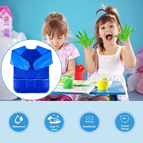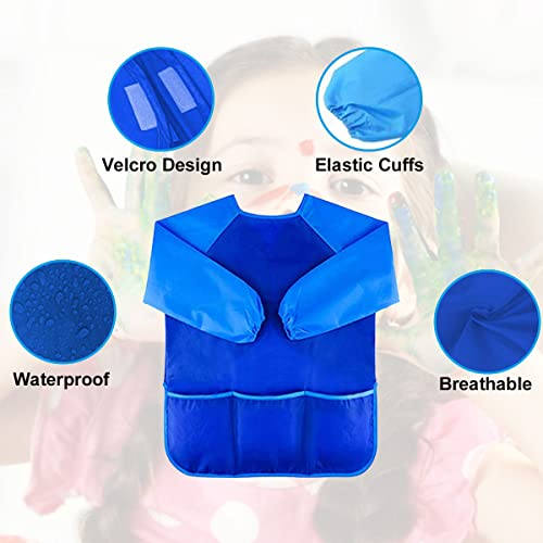 BAOSROY Grembiulino Pittura Bambini,Grembiule per Pittura Bambini,Grembiuli Bambini,Grembiulino Bambini,Grembiule Impermeabile Bambini,Grembiulino Scuola con Maniche Lunghe,Blu,M
