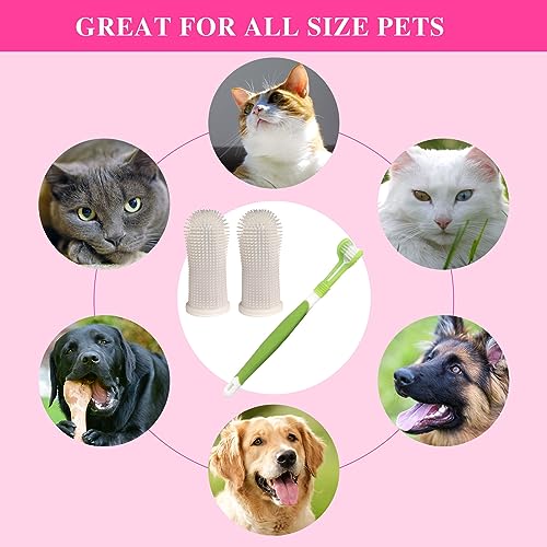 【Set spazzolini da denti】Il nostro set include 1 spazzolino a tre teste per animali domestici e 2 spazzolini bianchi per dita per animali domestici, che possono soddisfare l'uso quotidiano e le esigenze di sostituzione del vostro animale domestico.