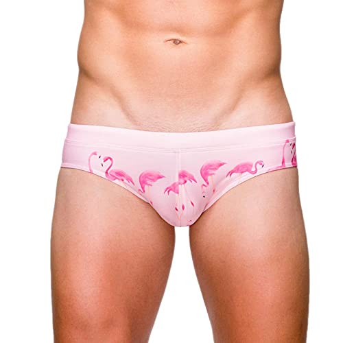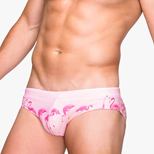 Baotung Costume da bagno da uomo, per sport acquatici, corto, aderente, BT0BH11, Fenicottero rosa., XXL