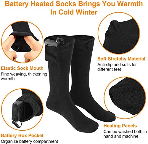 BAOTWO Calzini riscaldati elettrici, Calze Elettrici Riscaldanti, per Uomo e Donna, Caldi Calzini in Cotone per Sport all'Aria Aperta, Campeggio, Pesca, Ciclismo, Motociclismo, Pattinaggio e Sci