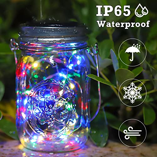 【Decorazione Perfetta】 Le lampada di vetro sono dotate di ganci portatili, che possono essere facilmente appesi ovunque. Simpatico barattolo di vetro e romantiche luci bianche calde si adatteranno perfettamente all'arredamento del tuo giardino, terrazza, ecc. È anche una scelta meravigliosa come regalo!