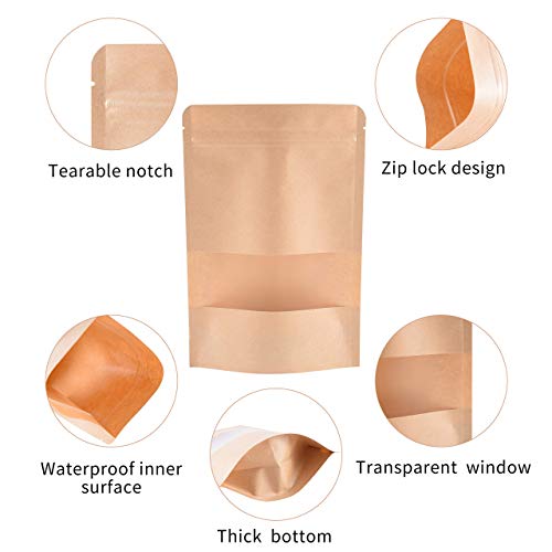 BaoWnylz 50 Sacchetti di Carta Kraft con Finestra (15 X 22 X 5.5cm), Sacchetti per Campioni di Cera, Impermeabili e Resistenti All'Umidità, Riutilizzabili, Adatti per Frutta Secca, caffè, tè e Semi