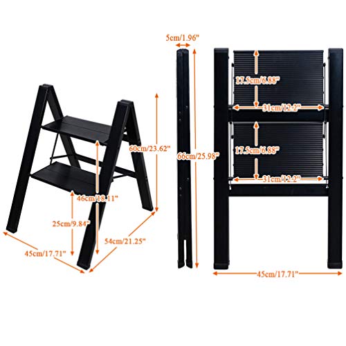 BAOYOUNI Scaletta in Alluminio Pieghevole a 2 Gradini Portatile Scala Domestico Antiscivolo Leggero Sgabello, 17,5 cm Largo Pedale, Portata max 100kg, per Casa, Ufficio, Biblioteca, Pittura, Nero