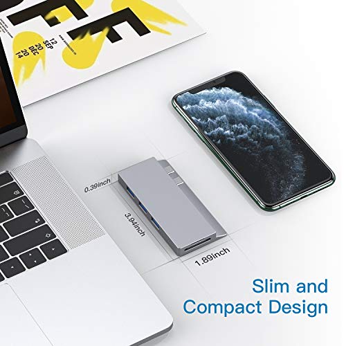 Baozun Hub USB C 5K Thunderbolt 3 Dock 6 in 1 Type C Hub Adapter 100 W Alimentazione 3*USB 3.0, UHS-II SD 4.0/Micro SD Lettore di Schede MacBook Pro 2019/2018/2017/2016 13"15" MacBook Air 2019/2018