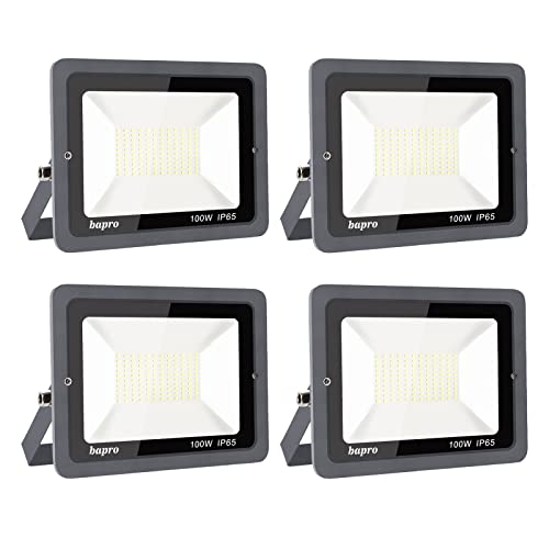 Bapro 100W Faretto LED da Esterno, Faretti LED Esterno Bianco caldo 3000K Proiettore da Esterno,10000LM Faro LED Esterno Impermeabile IP65, Luce di Sicurezza Illuminazione Interna ed Esterna 4 Pezzi