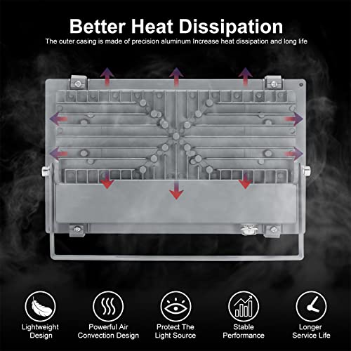 【Buone Prestazioni e Raffreddamento Efficiente】Proiettore Slim LED è progettato con un dissipatore calore tipo pinna, significa che funge radiatore per dissipare calore, fornisce oltre 50.000 ore di durata. Utilizza design IC intelligente alta qualità, offre servizio più stabile più lungo nella vita. 120° Angolo del fascio area di irradiazione, fornendo una sorgente luminosa alta luminosità.