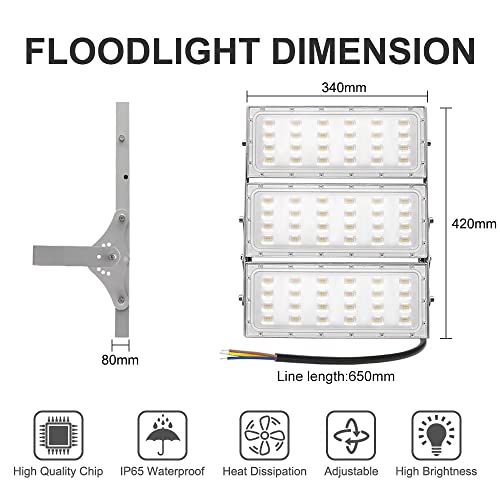 Bapro 2 Pezzi 300W Faretto LED da Esterno, Proiettore Faro LED 30000LM, Impermeabile IP65 Luce di Sicurezza, Bianco Freddo 6000K Faretti LED per Giardino Corridoio Cortile Magazzino Parcheggio Casa