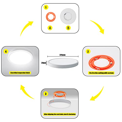 【Sicurezza e Garanzia】 La lampada da soffitto è certificata. L'alloggiamento in plastica ignifuga di alta qualità evita qualsiasi potenziale rischio di scosse elettriche, correnti di dispersione o anche possibili disastri dovuti a cortocircuiti. Proteggi la sicurezza della tua famiglia. In caso di problemi, contattaci senza esitazione.