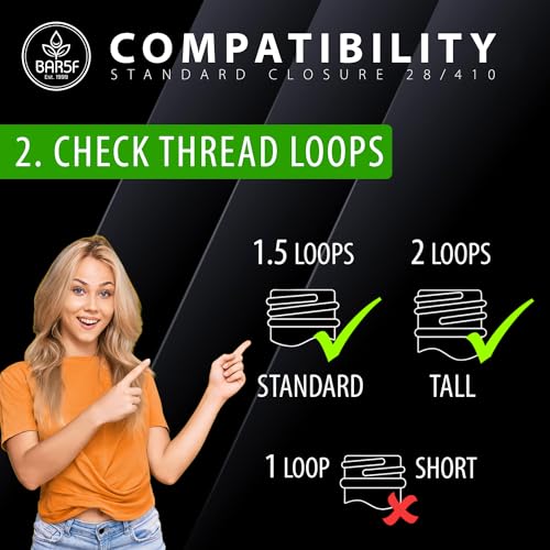Larghezza del collo: compatibile con collo da 28 mm. Chiusura standard 28/410. Prima dell'acquisto si prega di misurare il collo della bottiglia per assicurarne la compatibilità.