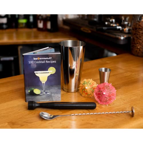 Bar@drinkstuff Set di libri di ricette e kit di utensili da cocktail Shaker, Muddler, Dosatore, Cucchiaio, 24 ombrelloni