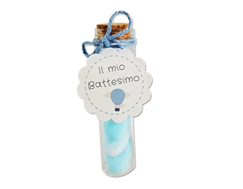 BARATTI Kit bomboniere 20 Provette Vetro 9 cm + Confetti + Cotone + Etichette Battesimo (Celeste)