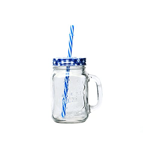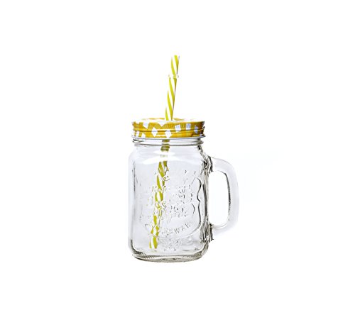 Set di 6 barattoli Mason manico coperchio per bere succo con cannuccia, bicchiere 500 ml